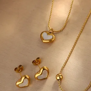 Truetarnish French Classic Heart Shape 18K Gold Plated Necklace with Earrings